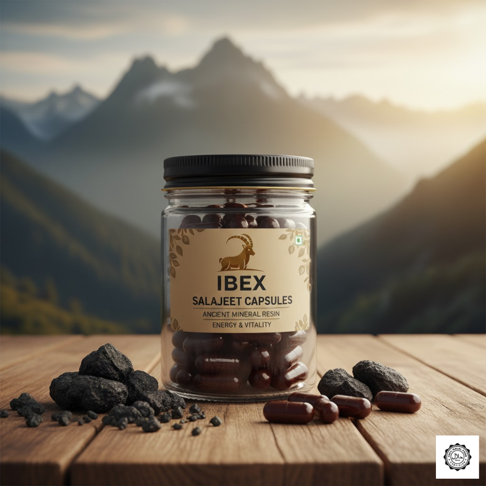 Experience the power of pure Himalayan Salajeet with Ibex Gold Grade Capsules. Each capsule contains 300mg of premium, sun-dried Salajeet carefully sourced from high-altitude Himalayan rocks and purified to maintain maximum potency. Rich in natural minerals, fulvic acid, and antioxidants, these capsules are designed to support energy, stamina, focus, and overall wellness.